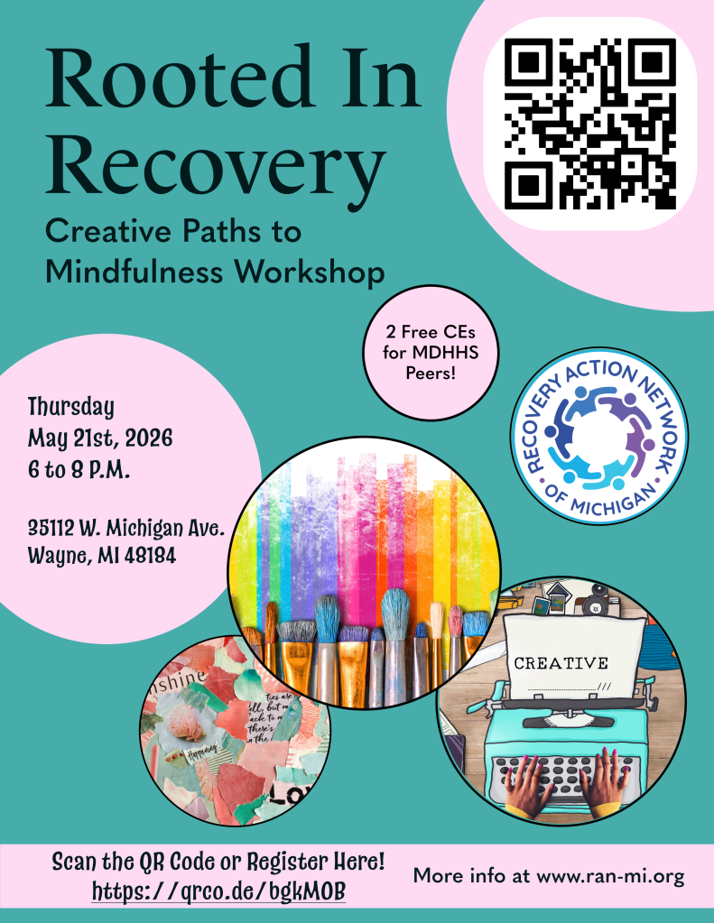 Rooted in Recovery is an interactive workshop designed for individuals in recovery and peer support professionals to explore the healing power of mindfulness through creativity. This experience blends guided meditation and education on mindfulness practices with hands-on creative expression.